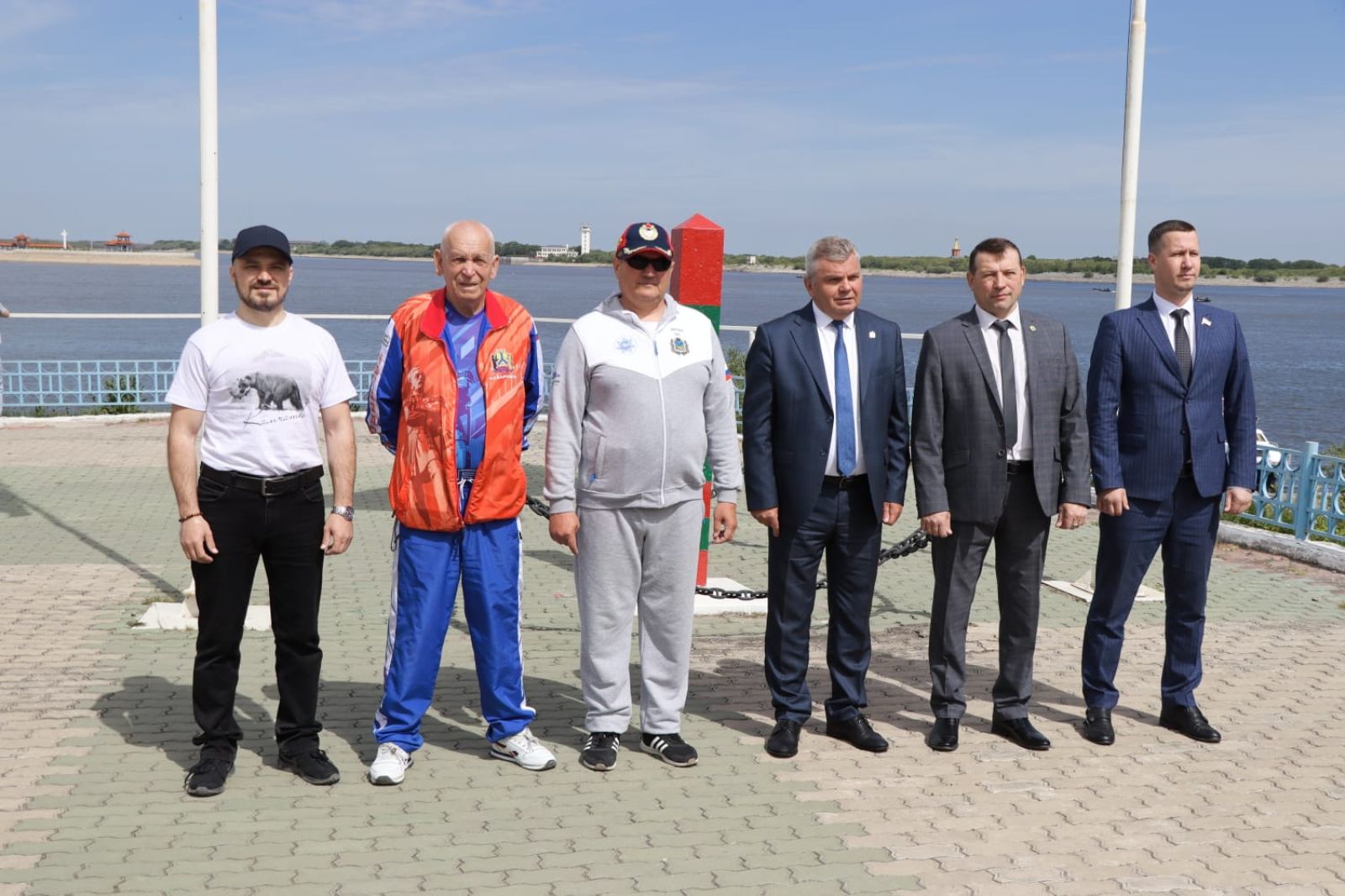 После проведения в селе Казакевичево торжественного открытия спортивного мероприятия, на котором присутствовали представители органов государственной власти, учащиеся кадетских классов, ветераны военной службы и жители района, был дан старт заплыву на месте пограничного знака 0 километр и памятника легенде пограничной службы - полковнику Никите Карацупе.