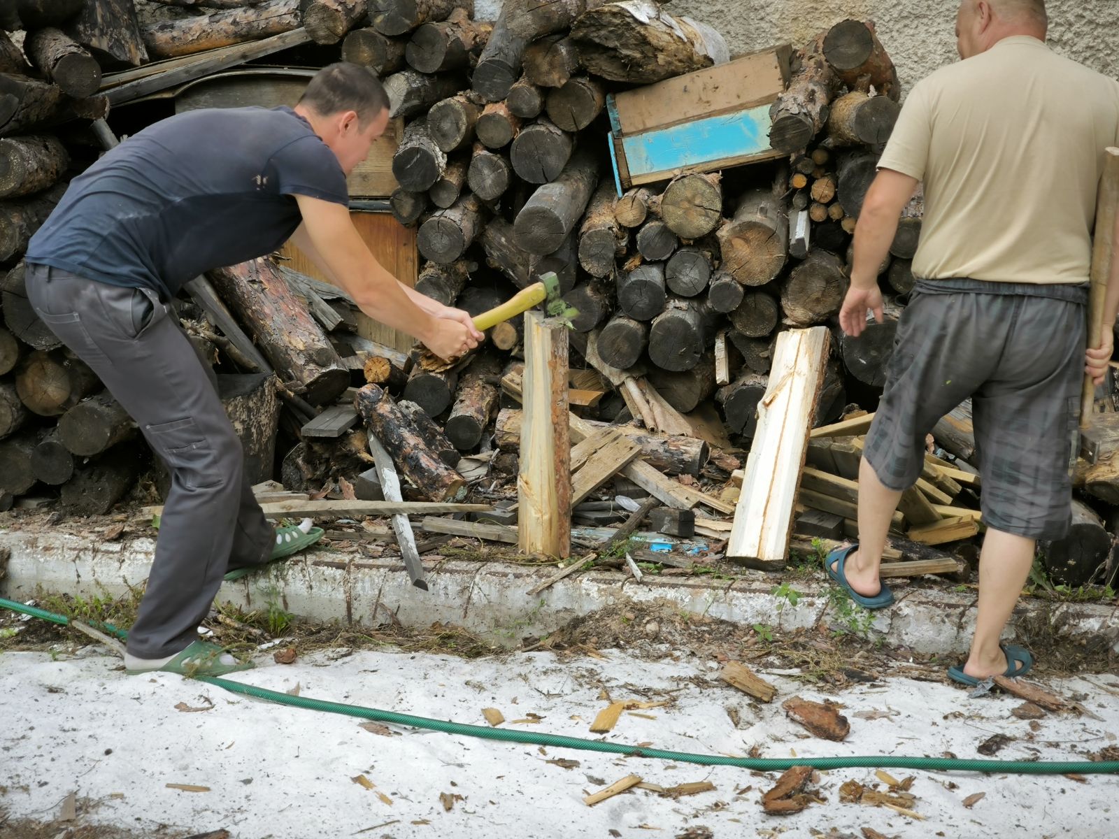 Оставшейся без сыновьей поддержки женщине, проживающей в частном секторе, нередко требуется помощь в колке дров. И сотрудники спорткомплекса с удовольствием выполнили эту тяжелую физическую работу, за что Е.Н. Акимова их тепло поблагодарила.