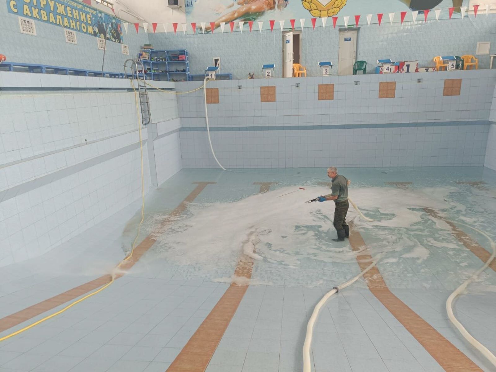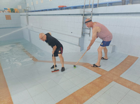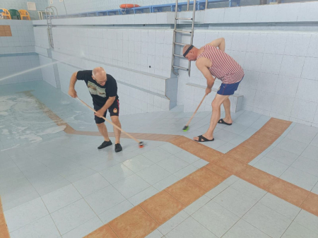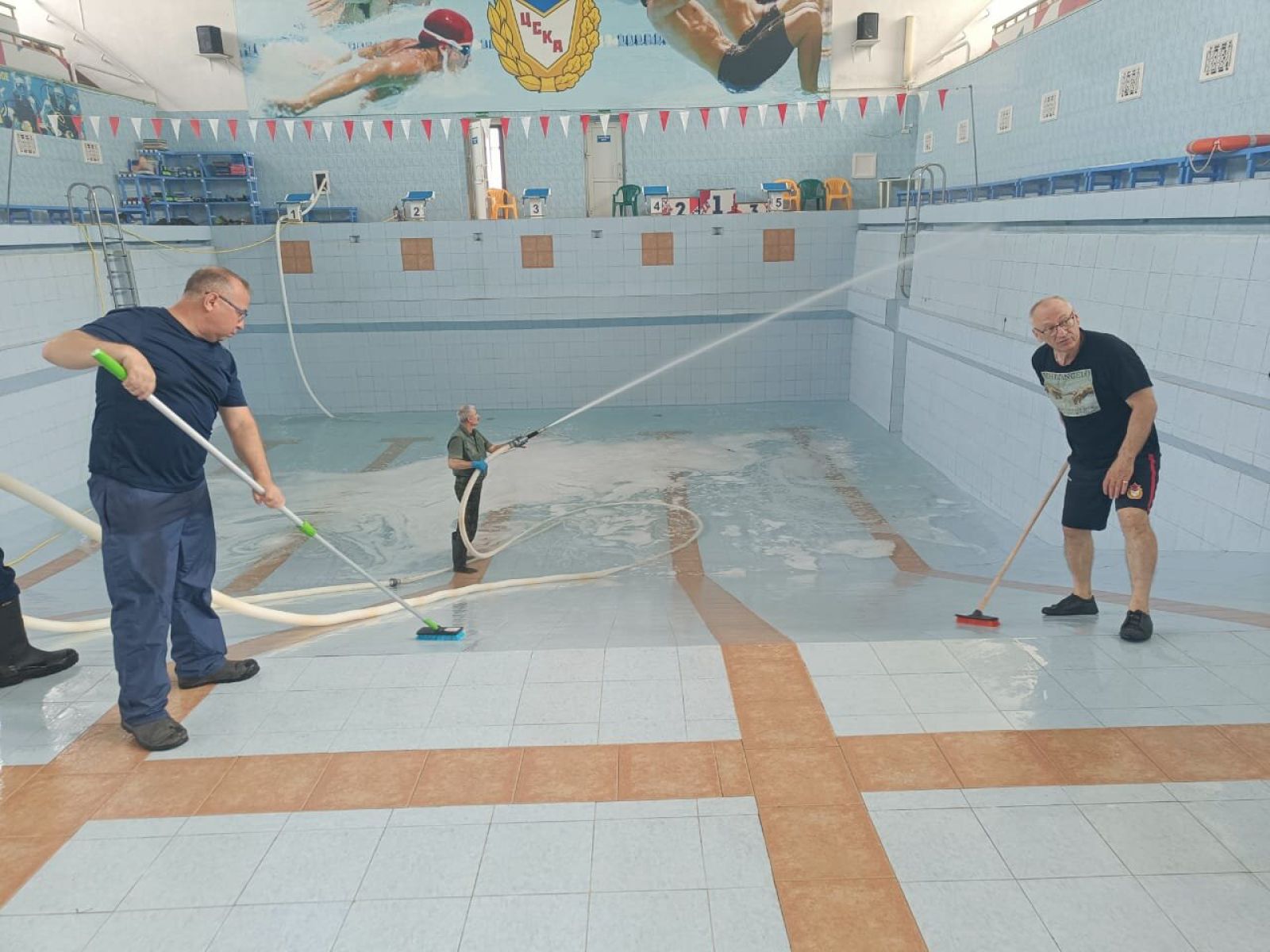 СОТРУДНИКИ ФИЛИАЛА ЦСКА/ХАБАРОВСК ОЧИСТИЛИ ЧАШУ ПЛАВАТЕЛЬНОГО БАССЕЙНА В ИСТОРИЧЕСКОМ СПОРТИВНОМ КОМПЛЕКСЕ
