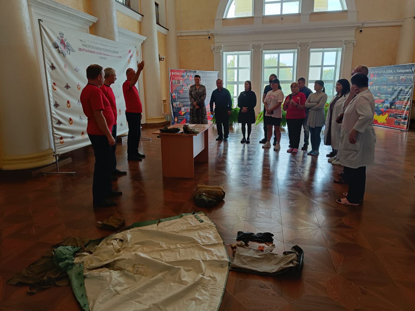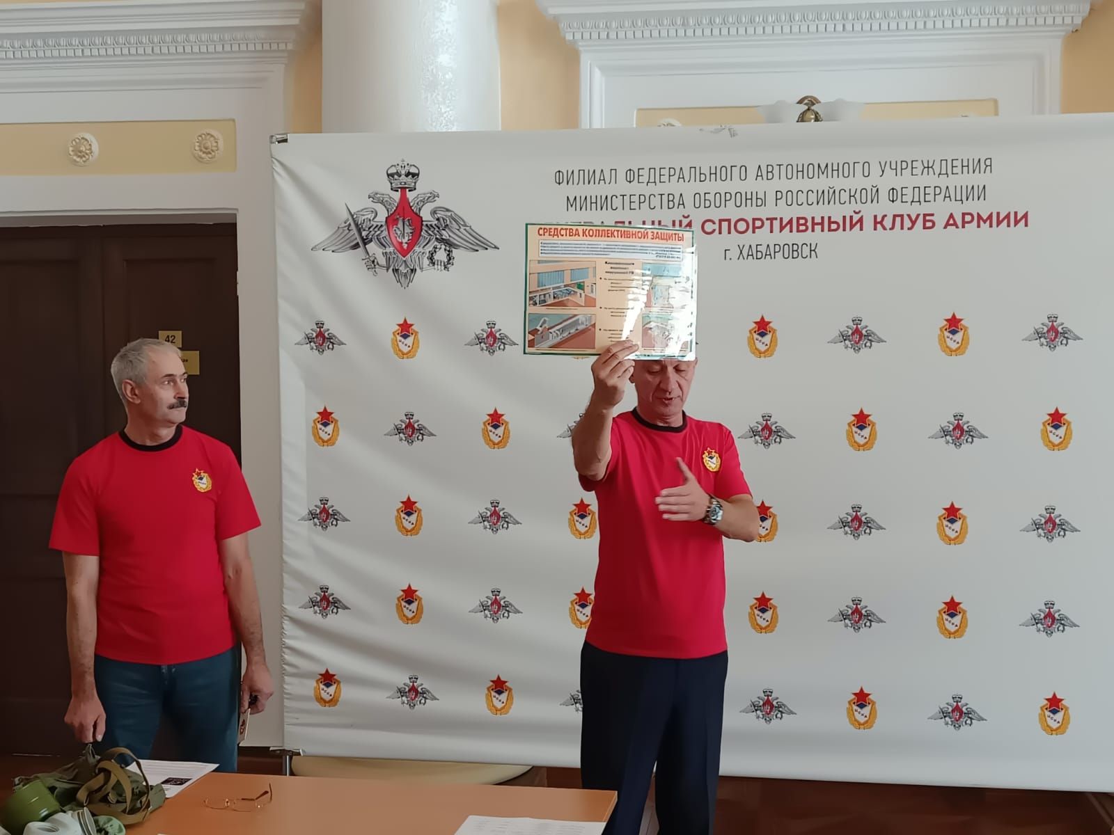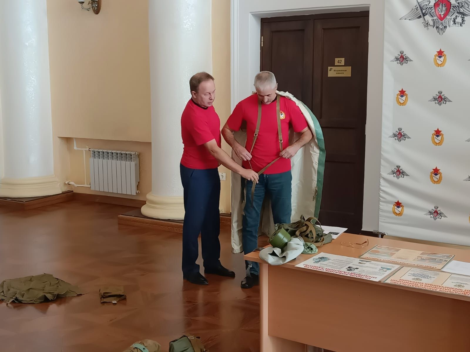 Затем на практике были отработаны вопросы использования средств индивидуальной и коллективной защиты, в частности, применения средств защиты органов дыхания и кожных покровов – противогаза и общевойскового защитного комплекта.