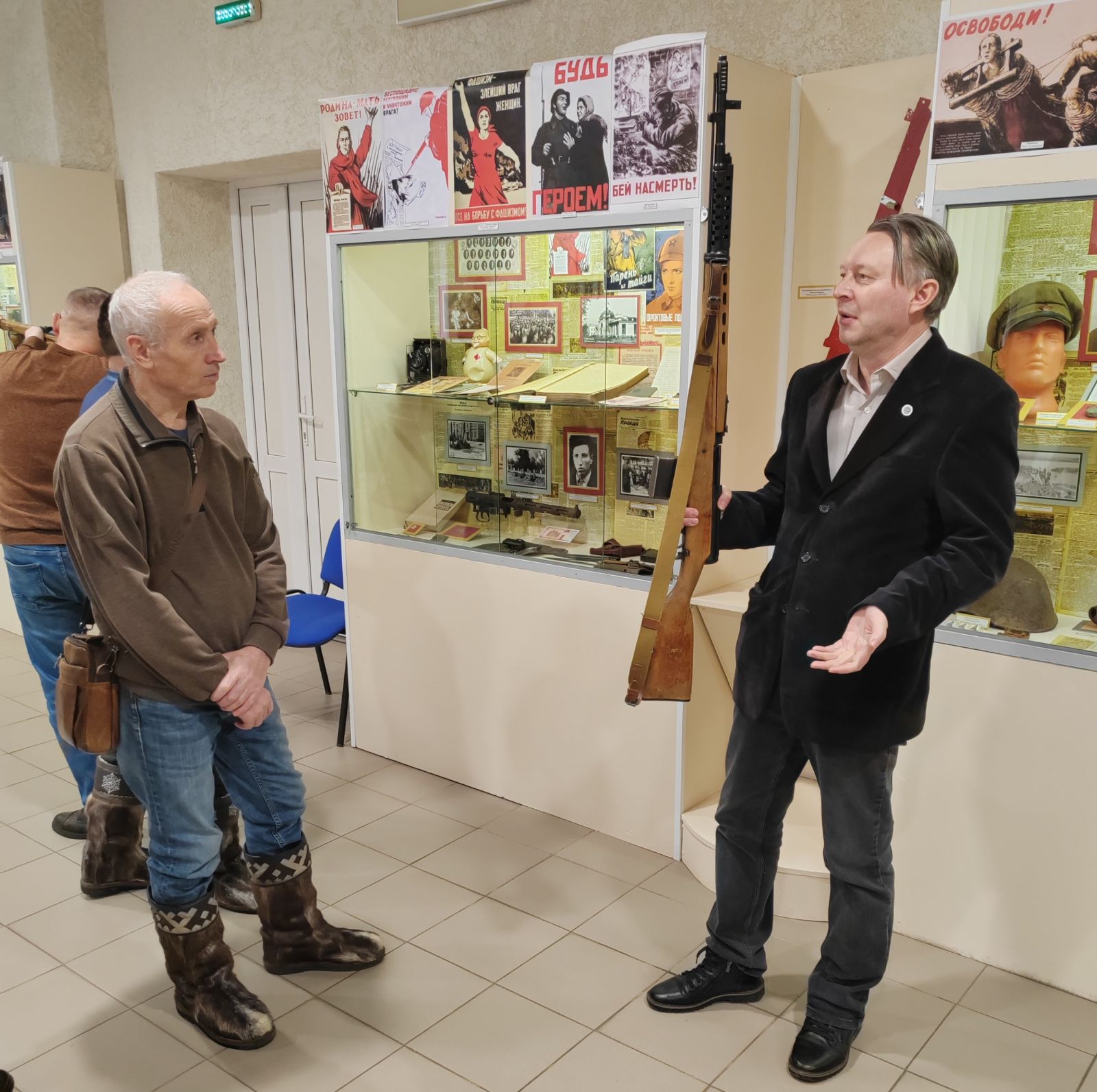 Личные вещи погибших участников СВО, в том числе героя России Эдуарда Дьяконова, отданы в дар музею родными героев. Сотрудники музея принимают на экспозицию образцы предметов гуманитарной помощи, отправляемой на фронт участникам СВО. Работники спортцентра,