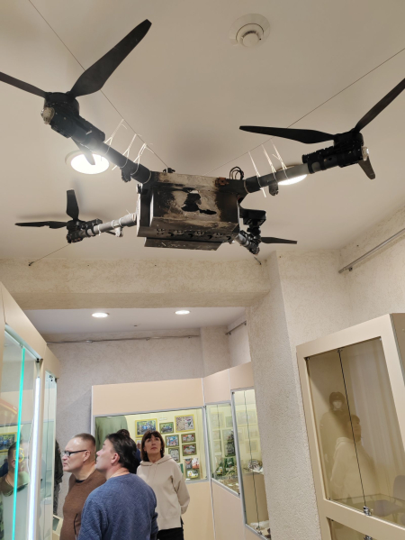 Отдельная экспозиция посвящена участию иркутян в военных конфликтах второй половины XX века и участникам специальной военной операции. Экспонаты, представленные на выставке, собраны в окопах ВСУ, среди них и образцы пропагандистской укронацистской литературы.