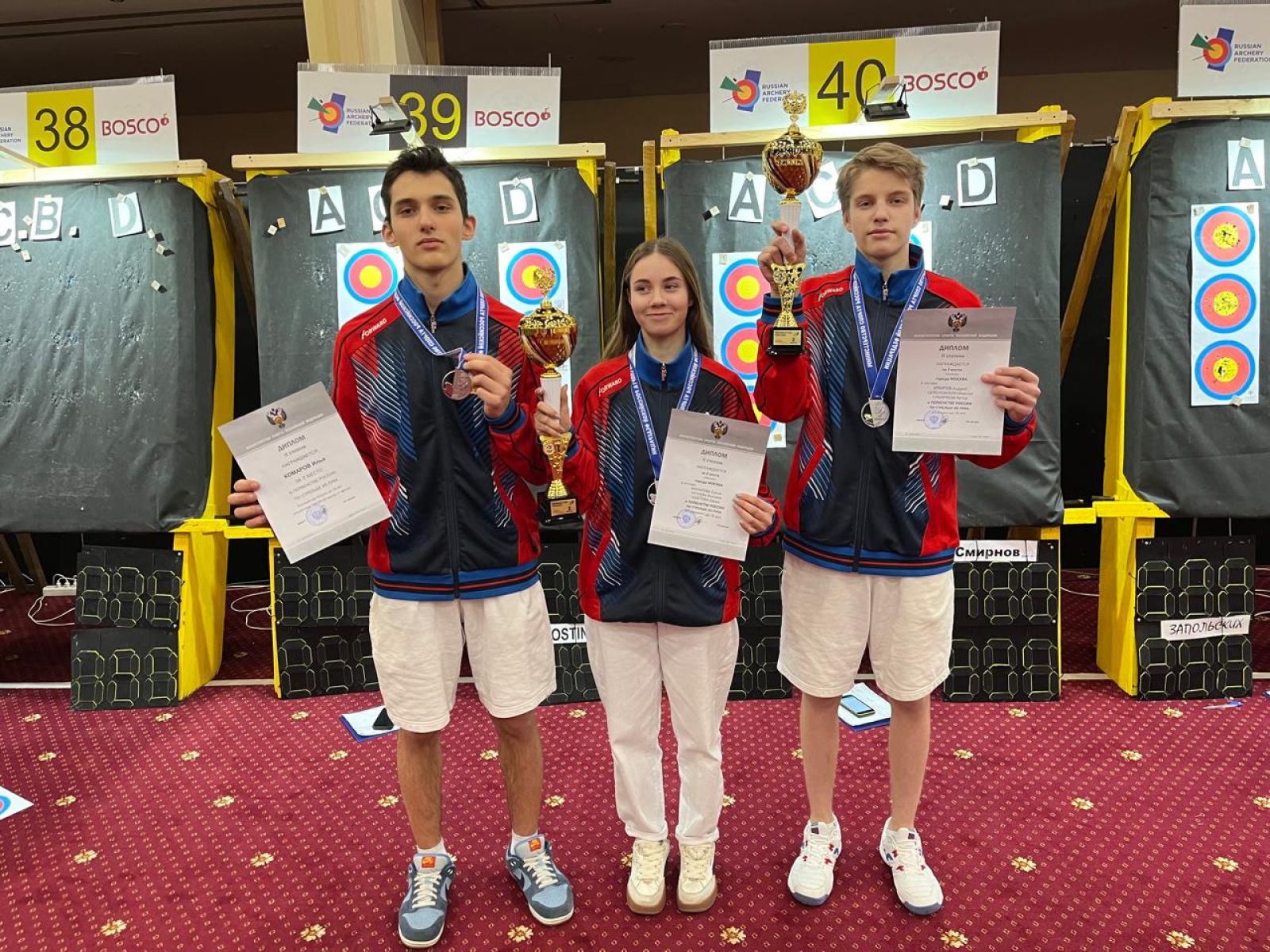 Спортсмены СШОР ЦСКА (по стрелковым видам) завоевали три серебряные медали. Комаров Илья – в личном первенстве (блочный лук до 18 лет), Шостова Дарья – в командном первенстве (блочный лук до 18 лет), Цейсновский Максим – в командном первенстве (блочный лук до 18 лет).