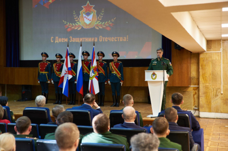 «Друзья, хочу и от себя лично, и от всего командования ЦСКА, поздравить всех нас, я уверен, с нашим профессиональным праздником, Днем защитника Отечества. Центральному спортивному клубу армии определена особая роль в защите нашего Отечества на спортивных аренах. И я уверен, что мы делаем свое дело честно, достойно и с полной самоотдачей. И это благодаря вам, уважаемые коллеги. Я бы хотел всех вас поздравить с этим праздником. Спасибо большое. С праздником!» – поздравил сотрудников Артем Валерьевич.