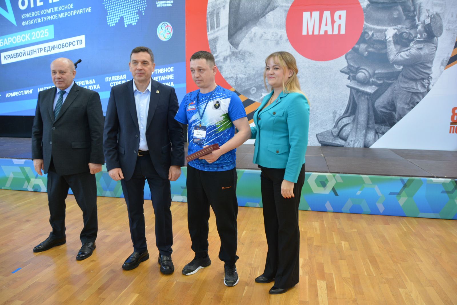 Участие в соревнованиях принимают и спортсмены, которых курирует Хабаровский филиал ЦСКА. В частности, ветеран боевых действий Иван Александрович Погуляев, в настоящее время - старший специалист военного комиссариата Хабаровского края.