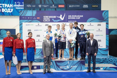 С 26 по 30 марта в Южно-Сахалинске прошли международные соревнования «Кубок Евразийских стран» по прыжкам в воду. Спортсмен-инструктор Александр Белевцев завоевал бронзовую медаль в дисциплине прыжки с трамплина 3 м синхронно.