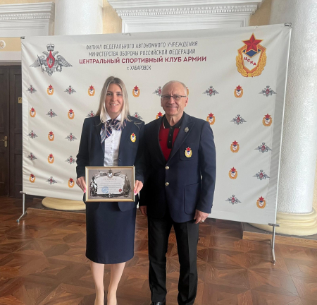 На торжественном построении Александр Смиренников вручил грамоту за достигнутые успехи в служебной деятельности, примерную трудовую дисциплину и добросовестное исполнение должностных обязанностей старшему инструктору-методисту группы (организации мероприятий и спортивной работы) Кристине Душковой.
