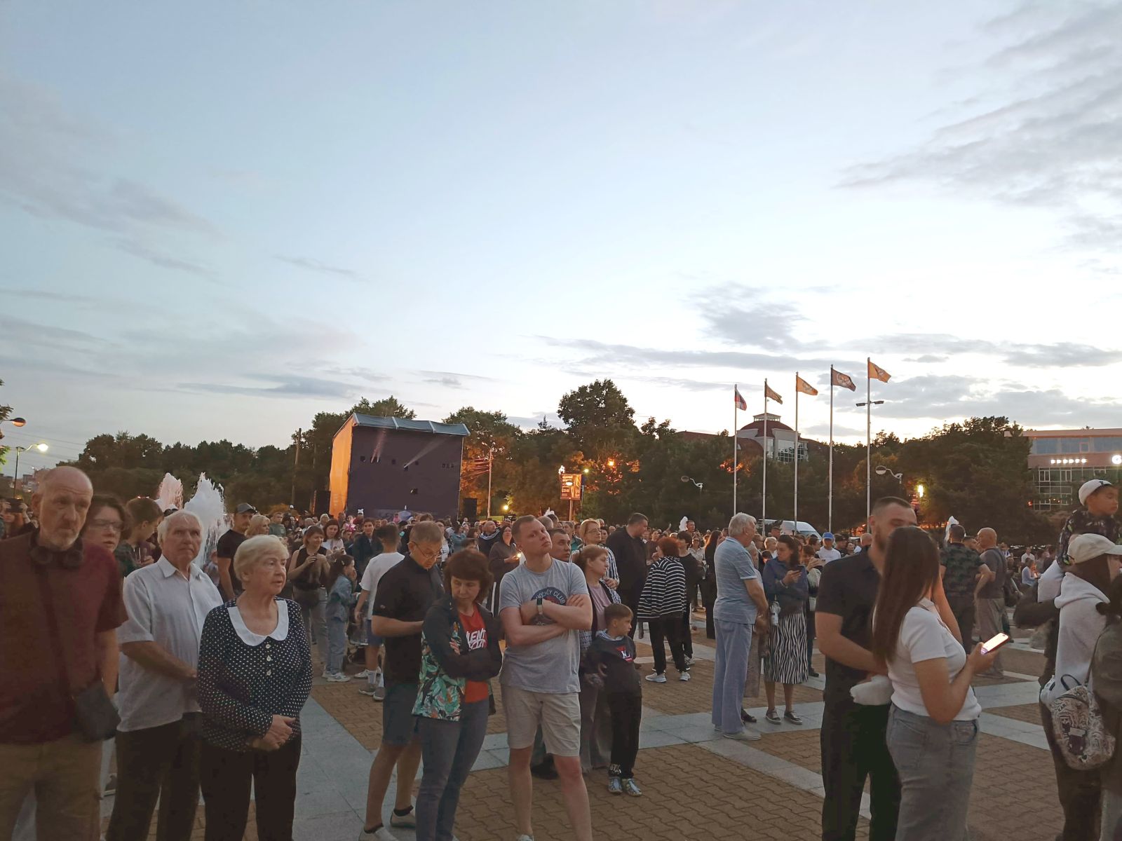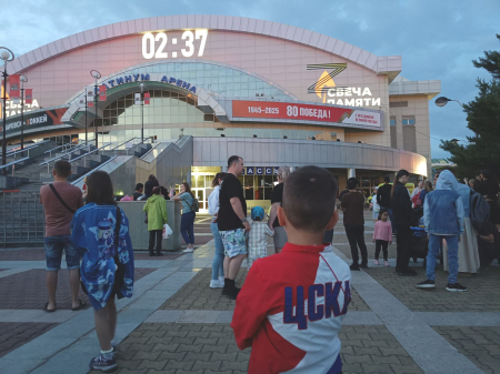 Зрителями светового шоу стали сотрудники Хабаровского филиала ЦСКА во главе с заместителем начальника Максимом Ивановым и воспитанники спортивной школы (ОРК) филиала.
