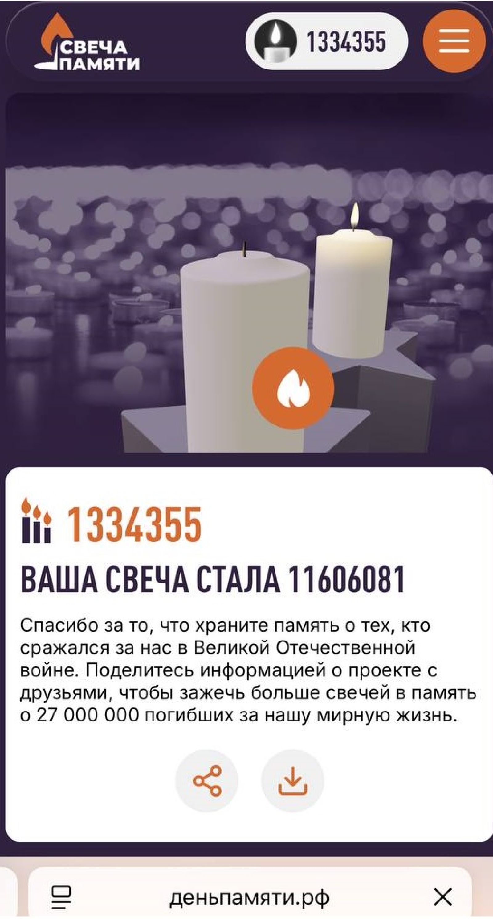 Старший инструктор-методист СШ (ОРК) Алексеева Анна Вадимовна приняла участие в акции «Свеча памяти» онлайн. Её свеча стала 11606081-й.