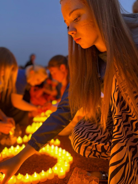 Затем из более трех тысяч свечей горожане и гости Читы создали огненную картину войны. Ее сюжет был посвящен подвигу забайкальского летчика Григория Онискевича, который в Великую Отечественную войну провел 106 воздушных боев на истребителе Ла-5 и был удостоен звания Героя Советского Союза.