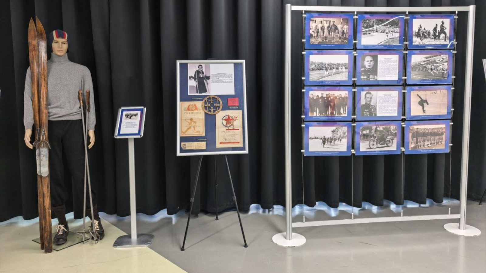 На ростовых манекенах была представлена форма лыжников и футболистов того времени.