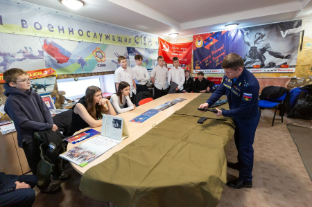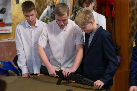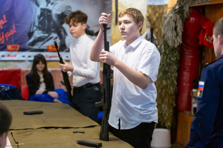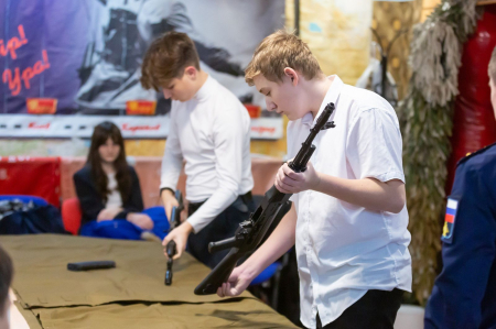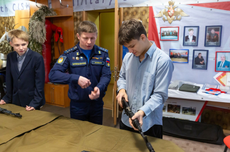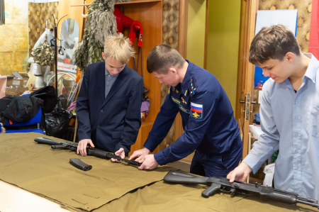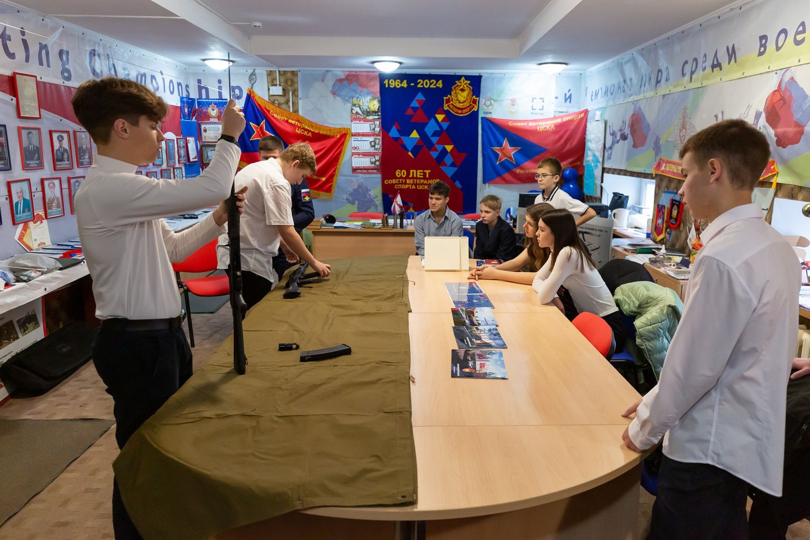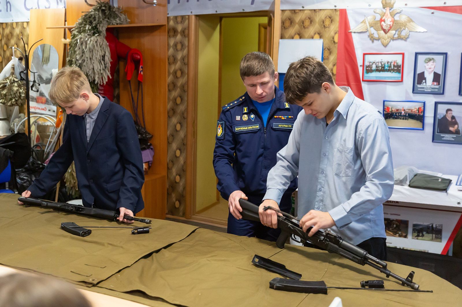 По окончанию наведения порядка на «Аллее Славы», командир взвода спортивной роты ЦСКА капитан Рустам Акчурин, провёл с обучающимися МБОУ «Школа № 3» г.о. Самара практическое занятие по разборке-сборке автомата Калашникова.