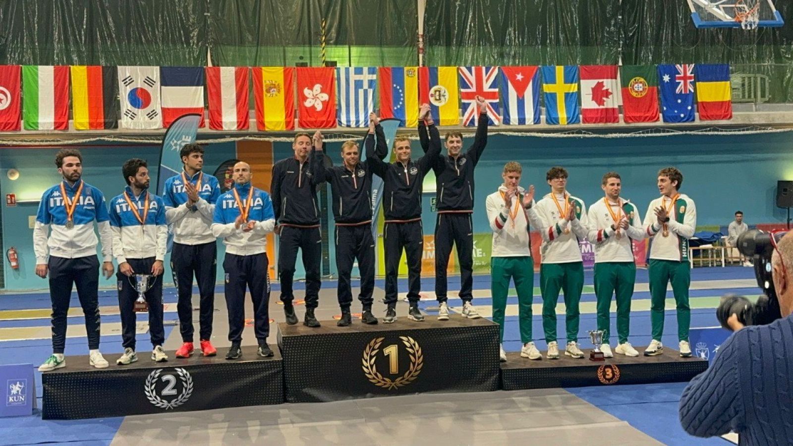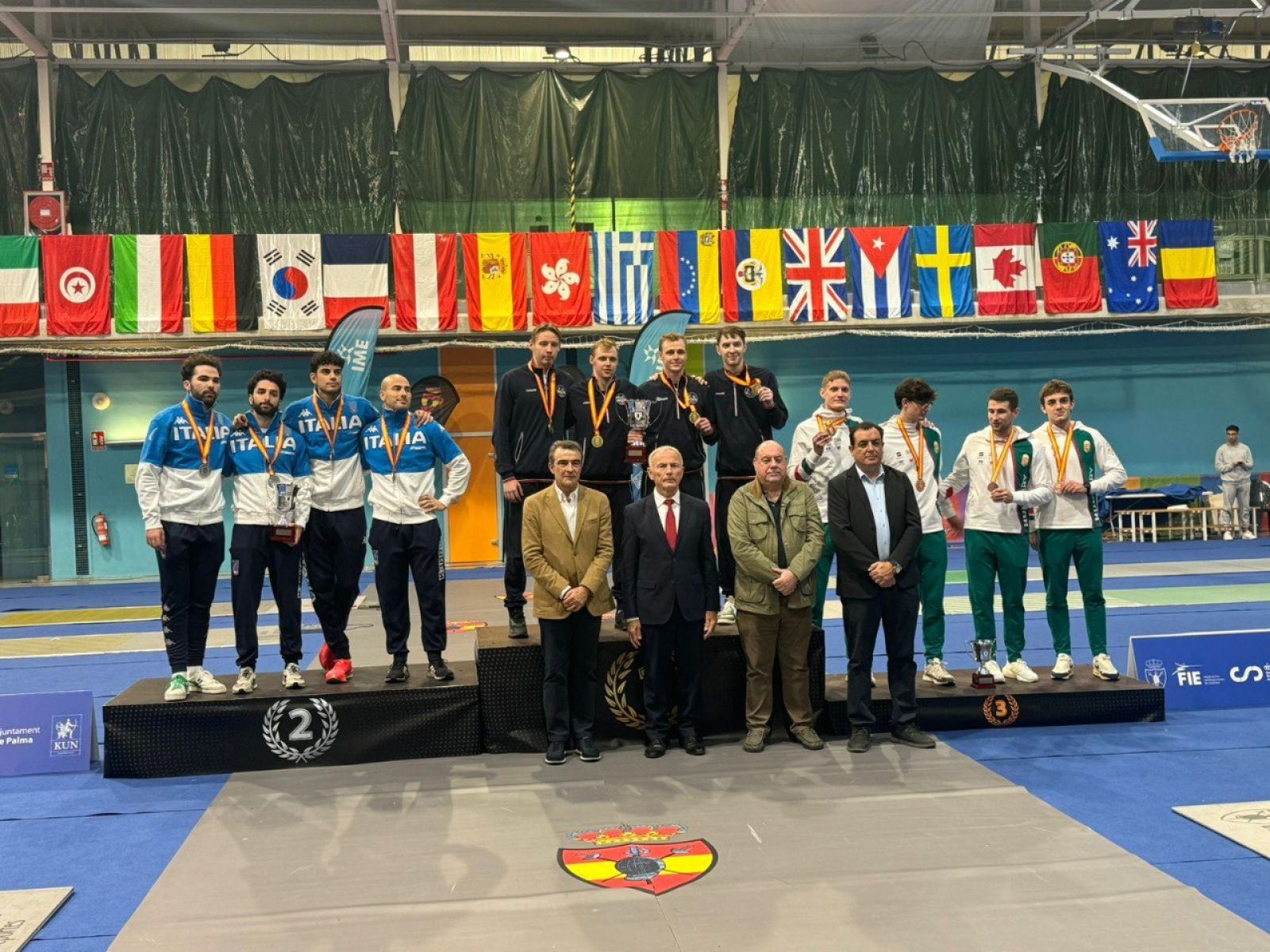 По регламенту поединки проходили до 45 уколов (4 бойца, каждый бой до 15 уколов), за медали состязались 16 команд из Европы, Азии и Америки.