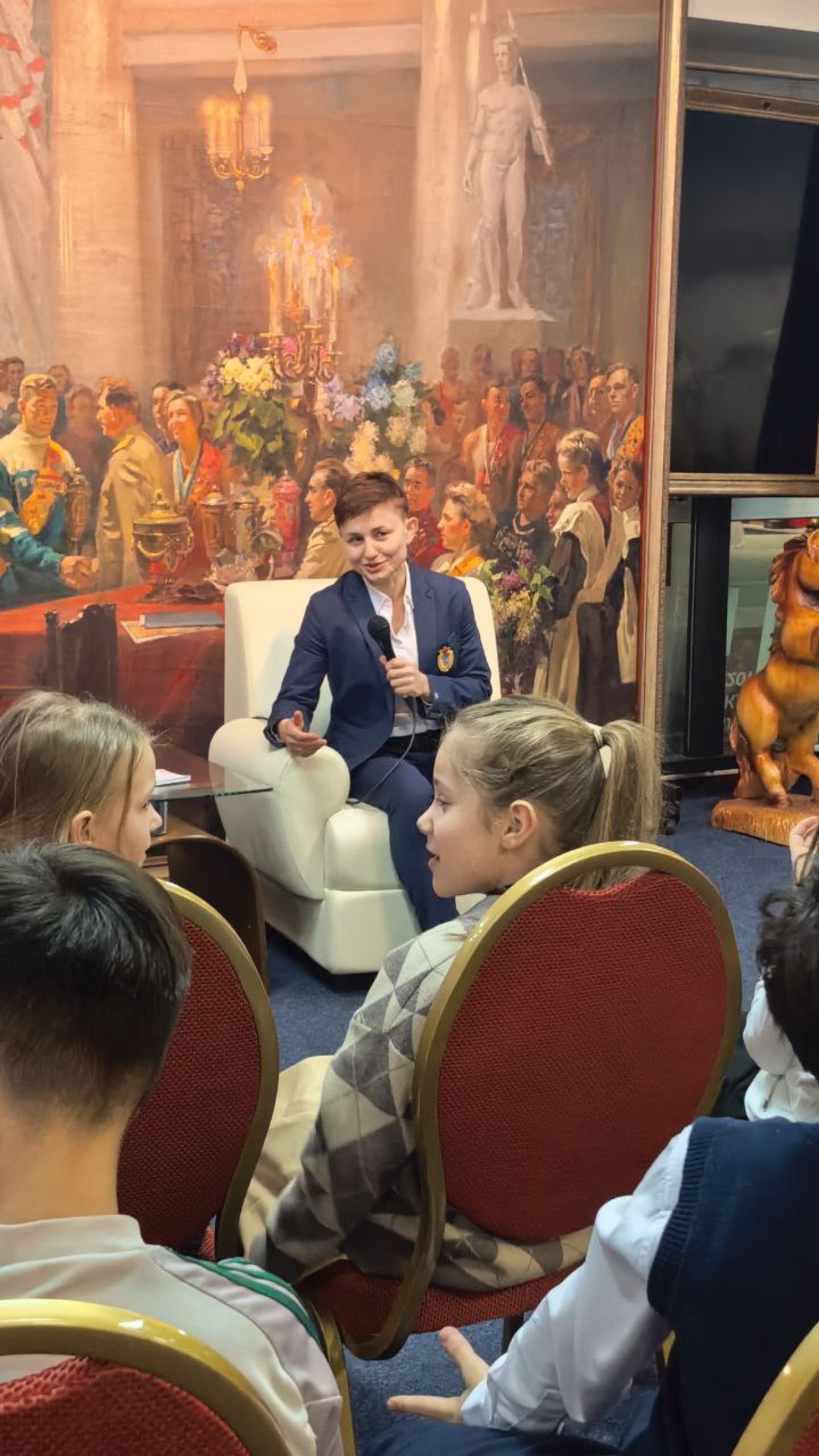 Гостья рассказала детям о своём спортивном пути, вспомнила яркие победы и смешные эпизоды из жизни. Ребята с огромным интересом слушали, а когда настала пора им самим задавать вопросы, вырос лес рук.