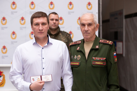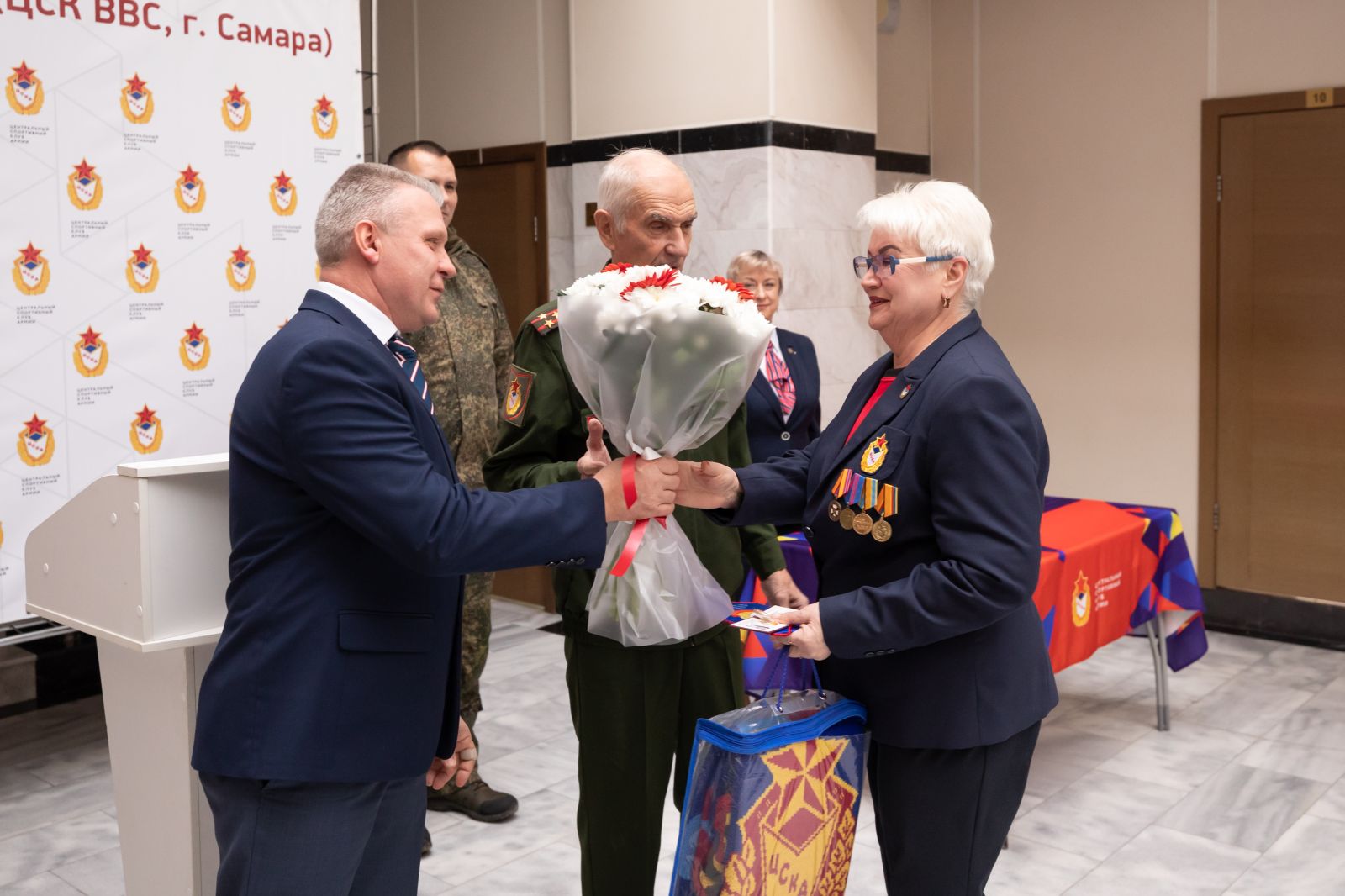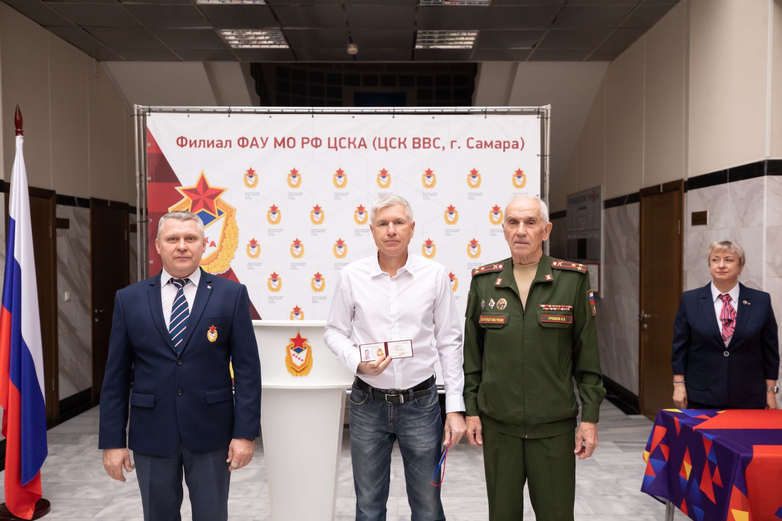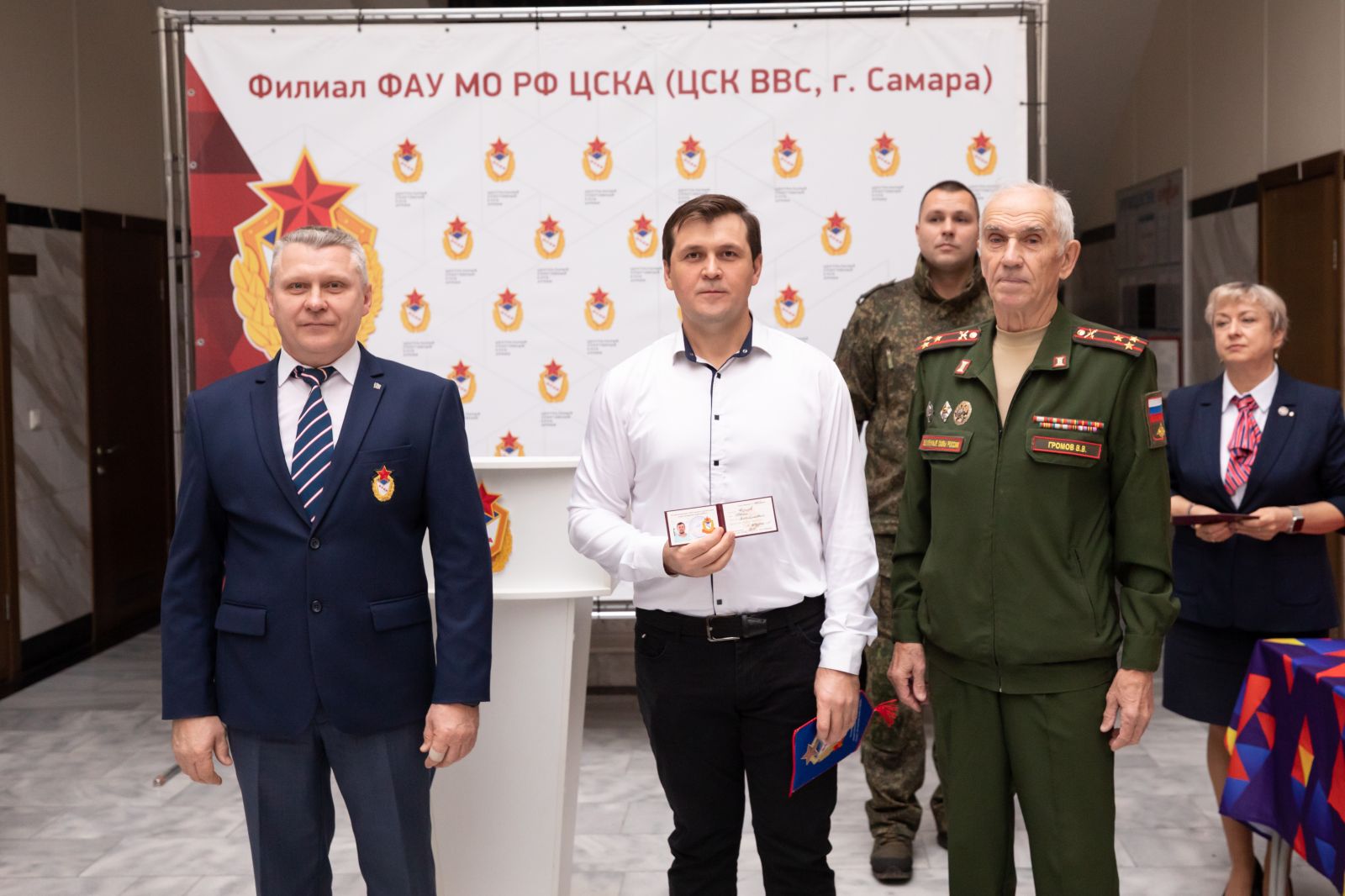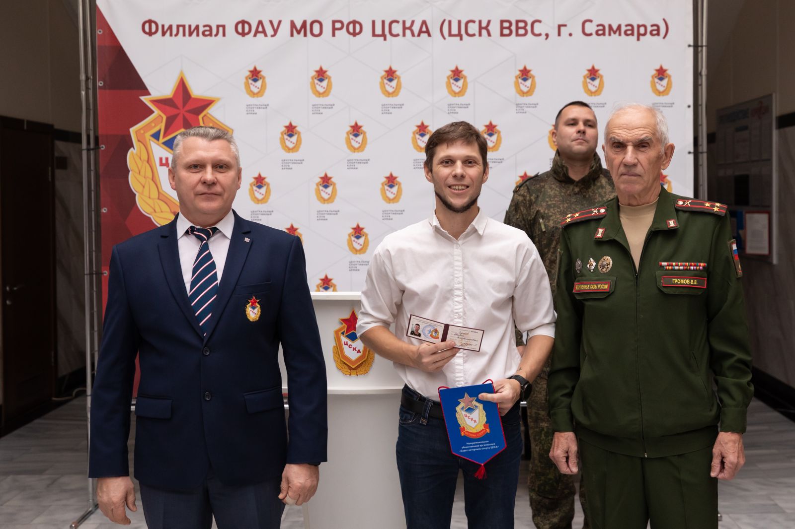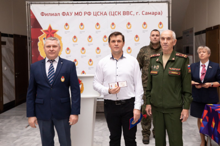 Председатель самарского регионального отделения межрегиональной общественной организации «Совет ветеранов спорта ЦСКА» Валерий Громов вручил удостоверения и знаки «Ветеран спорта Центрального спортивного клуба армии» принятым в общественную организацию.