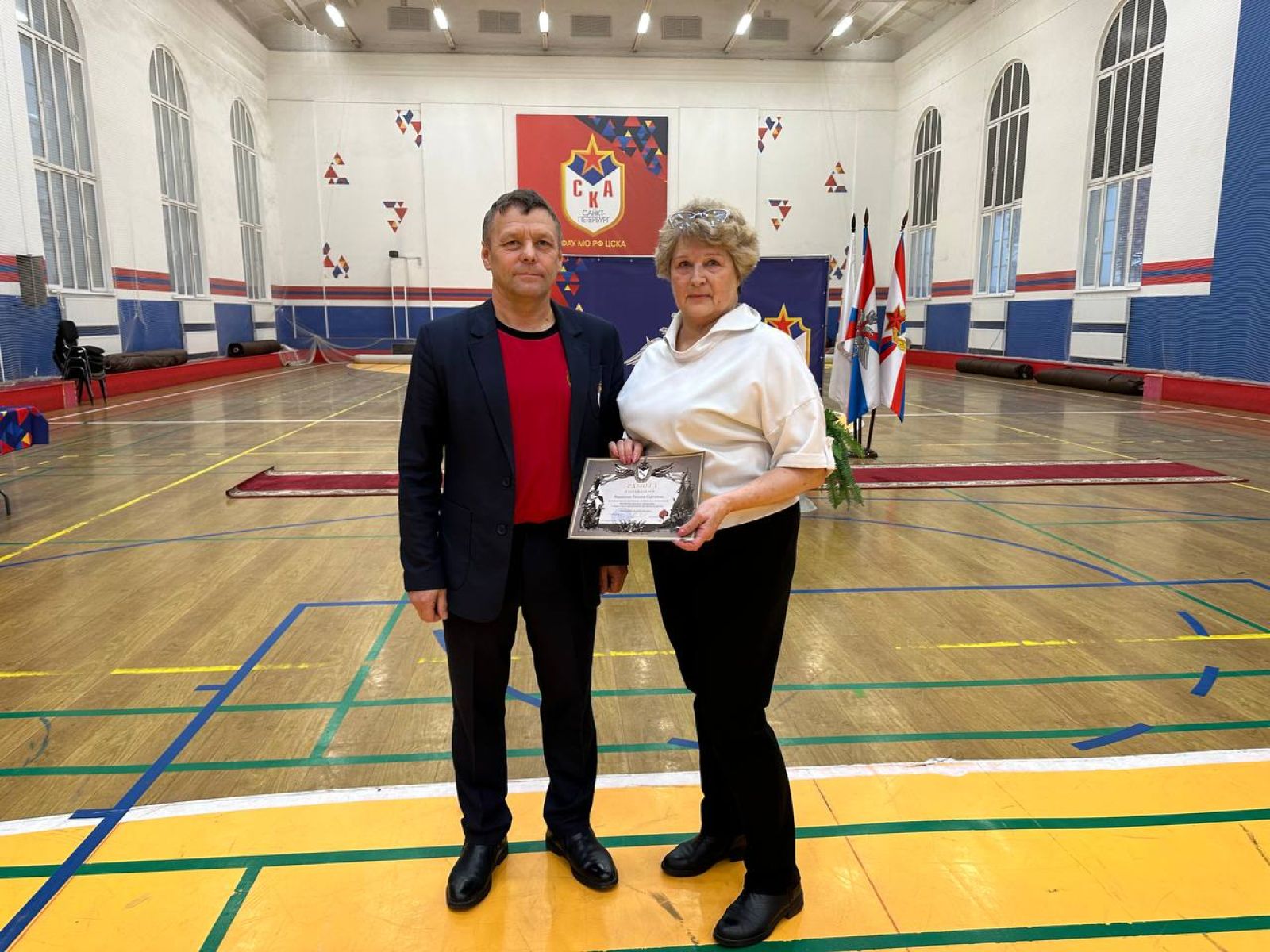 На построении Андрей Харин вручил медаль Министерства обороны Российской Федерации «За заслуги в увековечении памяти погибших защитников Отечества» начальнику финансово-экономического отделения - главному бухгалтеру санкт-петербургского филиала ЦСКА Татьяне Паниматченко, медаль Министерства обороны Российской Федерации «100 лет Центральному спортивному клубу Армии» начальнику спортивного комплекса (пос. Токсово) филиала ЦСКА (СКА, г. Санкт-Петербург) Виктору Хальченя. Также грамотой за добросовестное исполнение должностных обязанностей и примерную трудовую дисциплину была награждена администратор водно-спортивной станции Татьяна Виркятене.