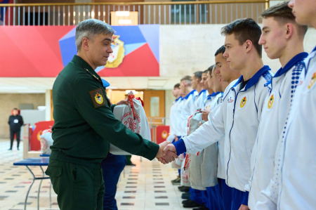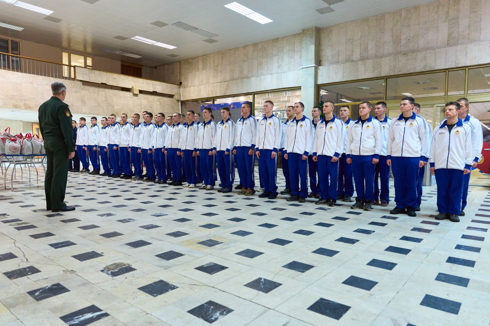 29 декабря в крытом легкоатлетически-футбольном комплексе ЦСКА начальник Центрального спортивного клуба Армии полковник Артём Громов поздравил военнослужащих спортивной роты с наступающим Новым годом и Рождеством.