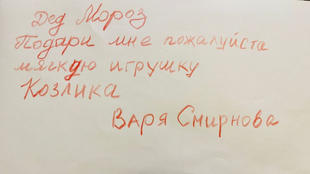 «Варенька, этот козлик в Новый год придет к тебе домой. Он будет с тобой дружить и играть. С Новым годом!