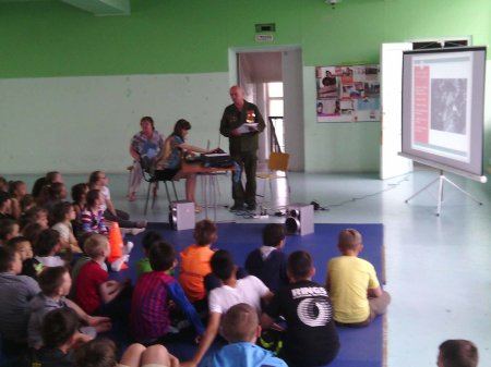 Старший инструктор-методист отделения по военно-прикладным и олимпийским видам спорта спортивного центра ЦСКА (Екатеринбург), мастер спорта СССР по боксу и мастер спорта России по армейскому рукопашному бою Александр Шивыдкин при помощи фото и видеоматериалов рассказал ребятам, отдыхающим в спортивном оздоровительном лагере, о жизненном пути и важнейших сражениях, выигранных под руководством великого полководца. Юные спортсмены проявили большой интерес с теме мероприятия, задавали вопросы и активно участвовали в беседе.