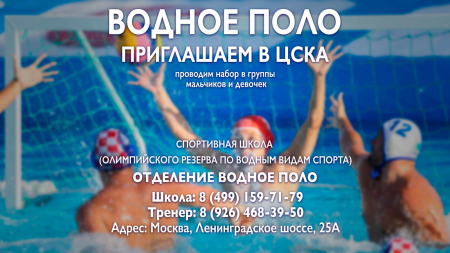 Записаться в секцию водного поло СШОР ЦСКА по водным видам спорта и задать все интересующие Вас вопросы можно по телефонам +7 (499) 159-71-79 и +7 (926) 468-39-50.