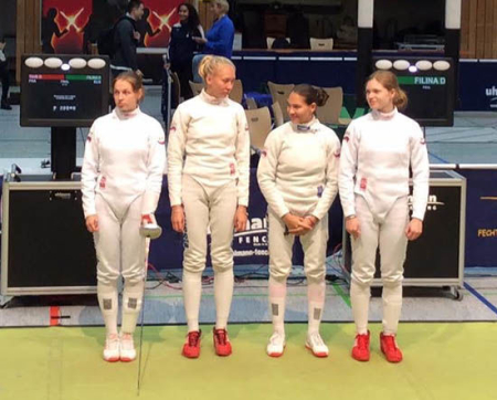 Первая встреча с командой Чехии на стадии 1/8 финала завершилась с большим преимуществом россиянок – 45:25. В четвертьфинале наши шпажистки одолели представительниц Швейцарии (44:42), а в полуфинале победили соперниц из Германии (45:31). В финальном встрече против сборной Франции российские спортсменки уступили представительницам Франции (40:45).