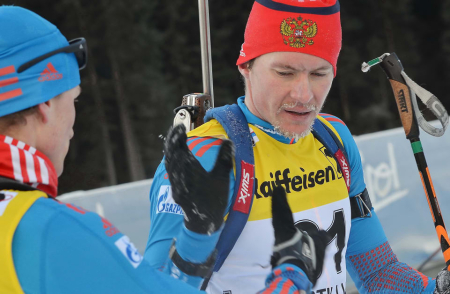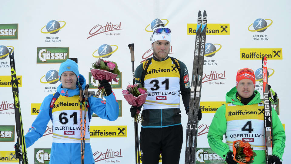 Серебряный призер индивидуальной гонки III этапа Кубка IBU армеец Юрий Шопин (слева)
