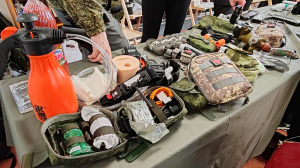 Сотрудницы СОК (г. Вилючинск) филиала ЦСКА/Хабаровск на выставке «Камчатка – фронту» освоили навыки изготовления масксетей и сухого душа