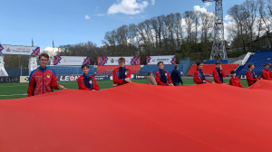 ВОСПИТАННИКИ СПОРТШКОЛЫ ХАБАРОВСКОГО ФИЛИАЛА ЦСКА РАЗВЕРНУЛИ КОПИЮ ЗНАМЕНИ ПОБЕДЫ