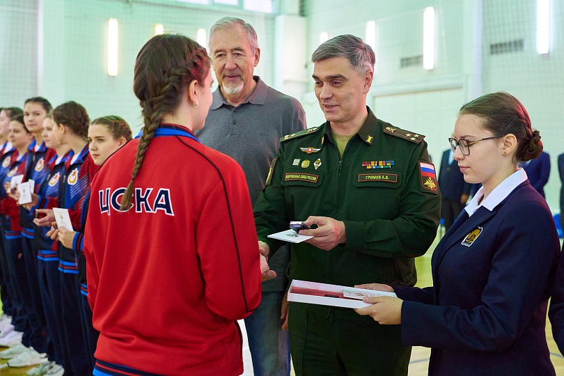 2 декабря в московском кадетском корпусе «Пансион воспитанниц Министерства обороны Российской Федерации» состоялась торжественная церемония вручения значков спортивных разрядов воспитанницам спортивных классов пансиона.Гостями мероприятия стали: начальник ЦСКА полковник Артём Громов; 1-й заместитель министра спорта Российской Федерации Одес Байсултанов; начальник пансиона воспитанниц МО РФ Лариса Максимова; олимпийский чемпион, чемпион мира и Европы по баскетболу, заслуженный мастер спорта СССР, наставник спортивных классов Пансиона воспитанниц Сергей Тараканов, а также представители Федерации конного спорта, Федерации гимнастики России, Всероссийской федерации парусного спорта, Федерации скалолазания, ФГБУ «Центр спортивной подготовки сборных команд России», заместители начальника пансиона, преподаватели, воспитатели и сами воспитанницы пансиона.