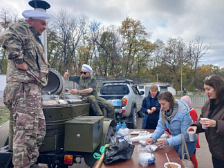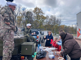 Также во время праздника работала полевая кухня — участников мероприятия угостили гречневой кашей и горячим чаем.