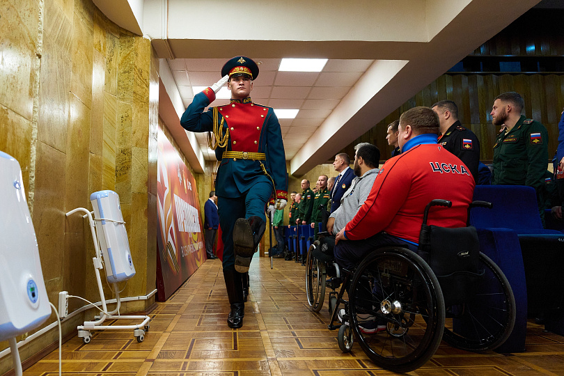 Перед присутствующими выступила начальник ЦСКА полковник Артём Громов, который рассказал об итогах работы по развитию адаптивного спорта в 2025 году.