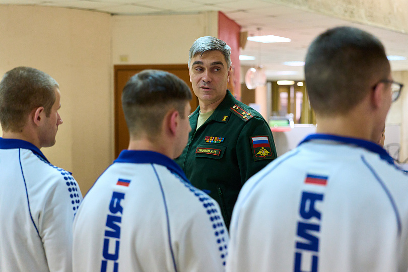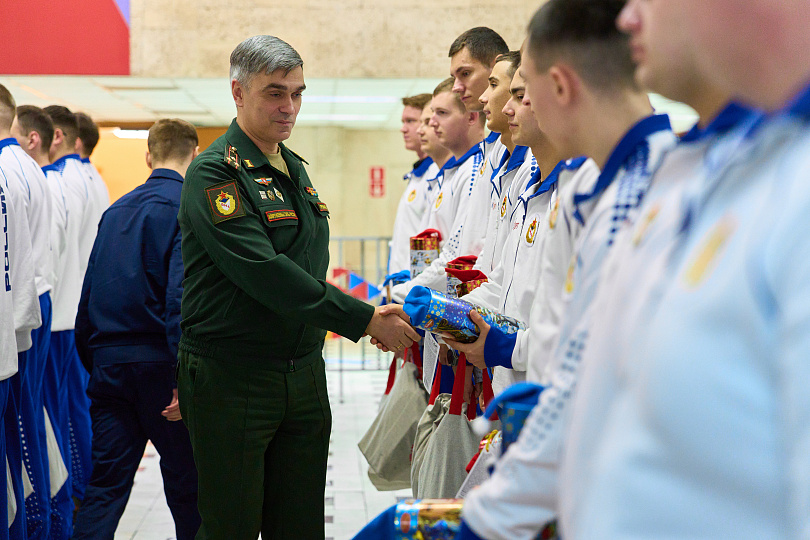 29 декабря в крытом легкоатлетически-футбольном комплексе ЦСКА начальник Центрального спортивного клуба Армии полковник Артём Громов поздравил военнослужащих спортивной роты с наступающим Новым годом и Рождеством.