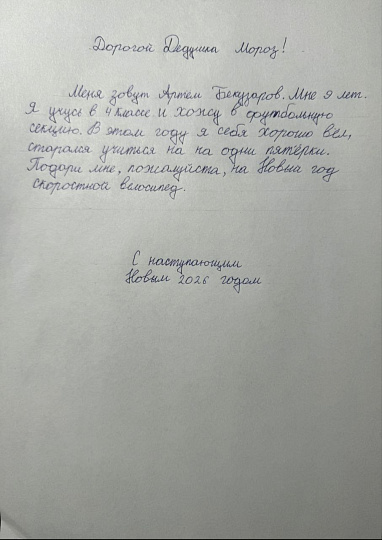 «Дорогой, Платон! Пусть Новый 2026 год принесет тебе много ярких, радостных событий! Желаю тебе, твоим родным и близким здоровья, счастья, чудесного настроения и, конечно же, исполнения желаний! А твое желание скоро исполнится, потому что твоя умная колонка с Алисой уже в пути и скоро будет у тебя!»
