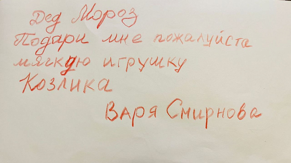 «Варенька, этот козлик в Новый год придет к тебе домой. Он будет с тобой дружить и играть. С Новым годом!