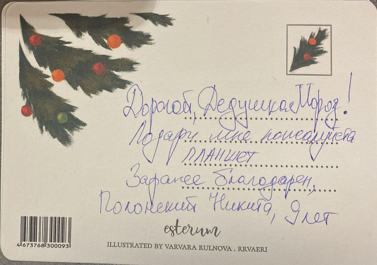 «Никиточка, я уже передала Деду Морозу твой электронный планшет, и он уже мчится к тебе на санях!»