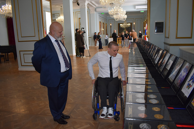 Почётным гостем мероприятия стал заслуженный мастер спорта России, чемпион Паралимпийских игр по плаванию в Токио, почетный гражданин города Севастополя Андрей Граничка. На выставку он принёс и свои награды.
