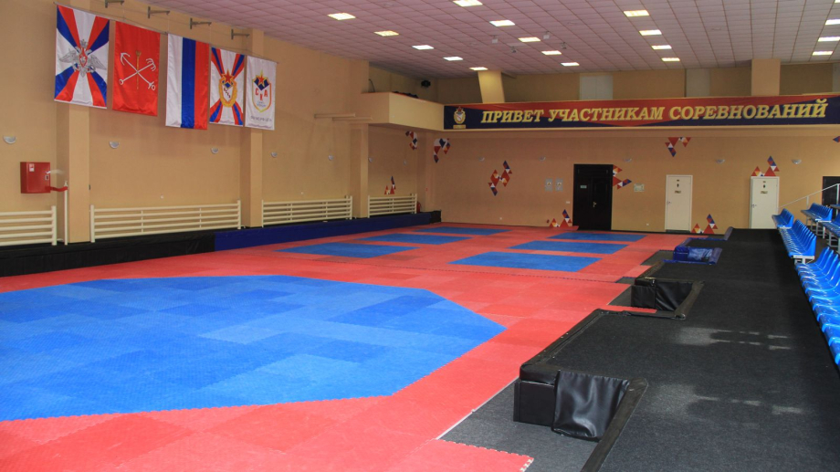 Многофункциональный зал на 2 этаже – просторное светлое помещение, хорошо проветриваемое, с большими окнами. Для удобства спортсменов оборудована зона разминки, а также вместительная зрительская трибуна.