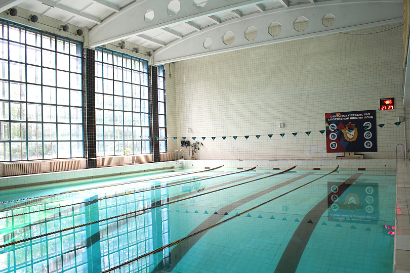 В плавательном бассейне проходят учебно-тренировочные занятия спортивной школы ЦСКА по плаванию и триатлону.