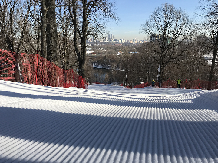 В выходные и праздничные дни в зимний период спортивный центр работает для свободного посещения с 10.00 до 20.00. Горнолыжные трассы расположены в живописном парке «Фили», защищенном от ветра. Вас ждут потрясающие виды на архитектуру города Москвы, Москву-реку, а также великолепные склоны с идеальным и свежим вельветом Наши опытные инструкторы научат катанию на горных лыжах. Склоны искусственно оснежаются. На наших горнолыжных склонах разрешено кататься только на горных лыжах.