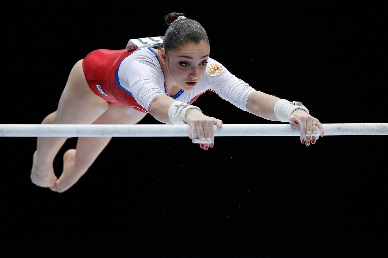 Упражнения на перекладине (муж.) - штанге из полированной стали диаметром 27-28 мм и длиной 2,5 м, укрепленной на двух стойках при помощи растяжек на высоте 2,55 м. По правилам, выполняя вращения (в разных направлениях) вокруг перекладины, спортсмен не имеет права касаться ее телом. В ходе выступления он должен продемонстрировать различные типы хватов и умение чисто и четко переходить от одного их вида к другому.