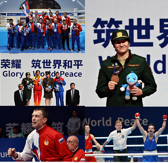 На военных играх, прошедших 18 - 26 ноября 2019 года в г. Ухань Китайской Народной Республики, в турнире боксеров разыгрывались медали в 15 весовых категориях, впервые в программу всемирных военных игр был включен женский бокс. Соревнования проходили по международным правилам AIBA. В боксерском турнире принимали участие представители 57 стран. Сборная команда Вооруженных Сил Российской Федерации по боксу на Играх была представлена 15 спортсменами (5 женщин, 10 мужчин), среди которых: 1 чемпион мира, 2 чемпиона Европы, 1 чемпион Всемирных военных игр, 2 призёра чемпионатов Европы, 1 призер Всемирных военных игр, 2 победителя первенства Европы среди молодежи. Армейцы заняли 2 общекомандное место, уступив лишь хозяевам турнира. Нашими боксерами завоевано 8 наград – 3 золотые, 1 серебряная и 4 бронзовые.