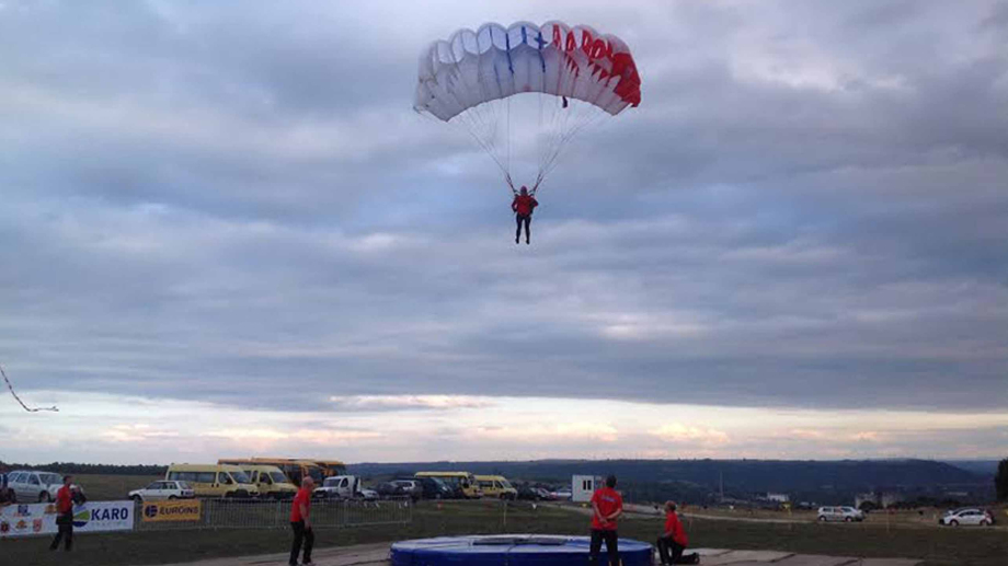- Точность приземления. Команда в составе пяти спортсменов совершает прыжок на точность приземления с высоты 1 000 метров на мишень диаметром 16 сантиметров с нулевой отметкой в центре мишени 2 сантиметра. Необходимо набрать наименьшее количество отклонений от нулевой отметки в центре мишени.