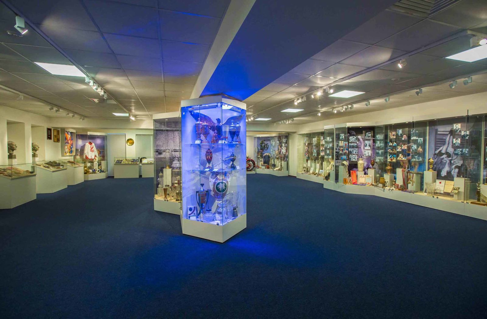 Здесь представлена одна из самых популярных экспозиций музея – хоккей с шайбой. Особенно популярен в нашей стране «канадский хоккей» стал в послевоенное время, когда «Красная машина» начала завоевывать мировые спортивные вершины.