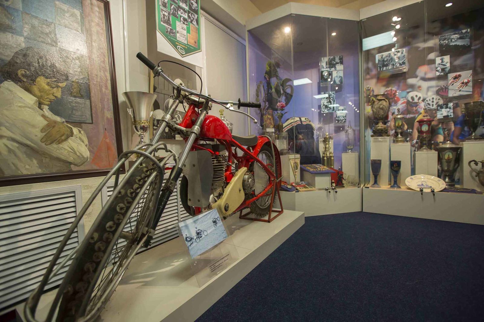 Помимо хоккейных реликвий в Синем зале музея хранятся другие раритеты. Например, диск первой советской олимпийской чемпионки Нины Пономарёвой, шахматы Анатолия Карпова, коньки Евгения Гришина, молот Юрия Седых, мотоцикл Сергея Тарабанько, шиповки Татьяны Лебедевой, россыпь медалей фигуристов и отечественных пловцов. И даже - седло, подаренное лично Семёном Будённым олимпийскому чемпиону по конному спорту Ивану Калите.