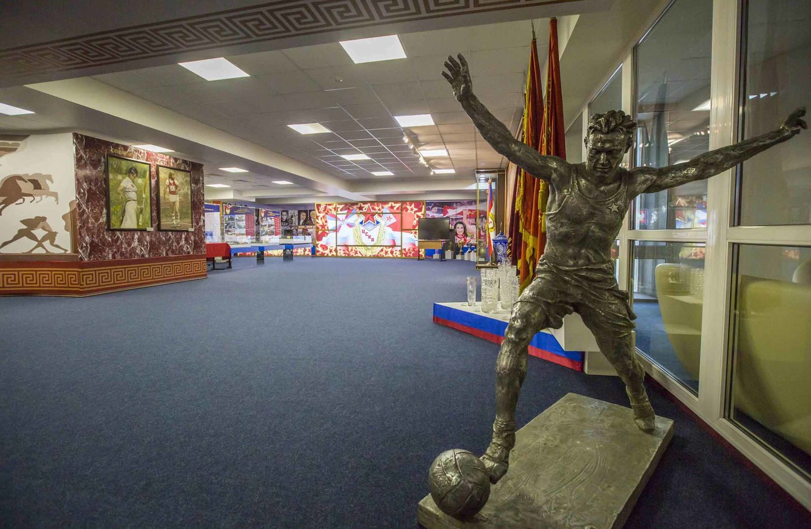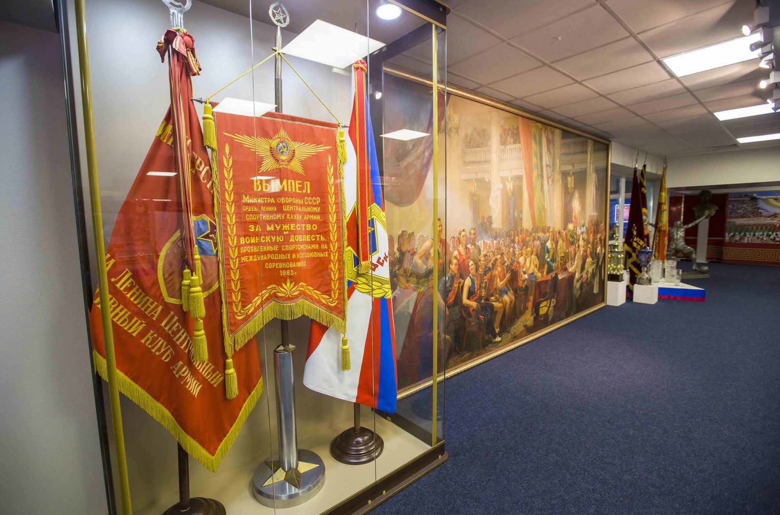 Своеобразная витрина Церемониального зала – полотно кисти художника Анатолия Горпенко «Награждение спортсменов в доме Красной Армии» (1946-1955 гг.), где изображены армейские атлеты послевоенных лет на церемонии награждения в Екатерининском зале Центрального Дома Советской Армии. Рядом с картиной – три исторических факела. Один из них дал старт Играм XXII Олимпиады в Москве, второй зажег огонь Всемирных юношеских игр, проходивших в российской столице в 1998 году, третий ознаменовал открытие XXII Олимпийских Зимних игр в Сочи.