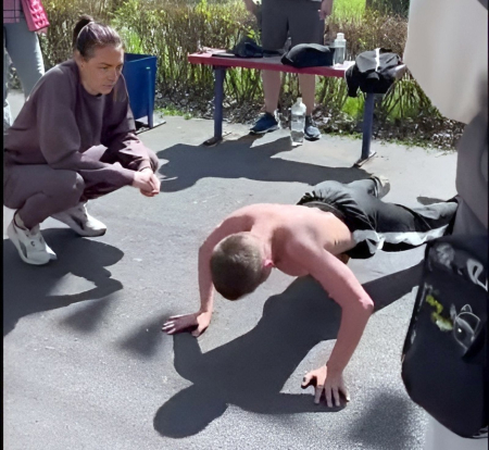 Леон стал победителем в номинации «Кто больше отожмется». Он отжался 1000 раз, выиграв сертификат на 13 тысяч рублей. Тренирует воспитанника тренер-преподаватель СШ (К) Алексей Хаханов.
