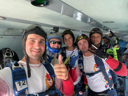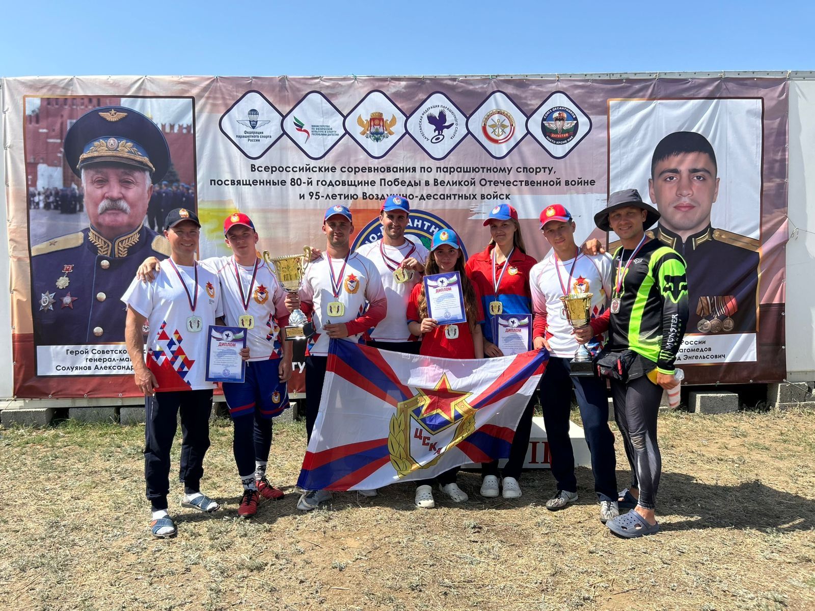Золотые награды в копилку команды положили спортсмены-инструкторы Кирилл Проничев, Алексей Давидюк и Матвей Силаев. Они стали лучшими в командном первенстве по точности приземления. Отдельно стоит отметить Алексея Давидюка, который помимо командного золота завоевал личное первенство в этой же дисциплине.